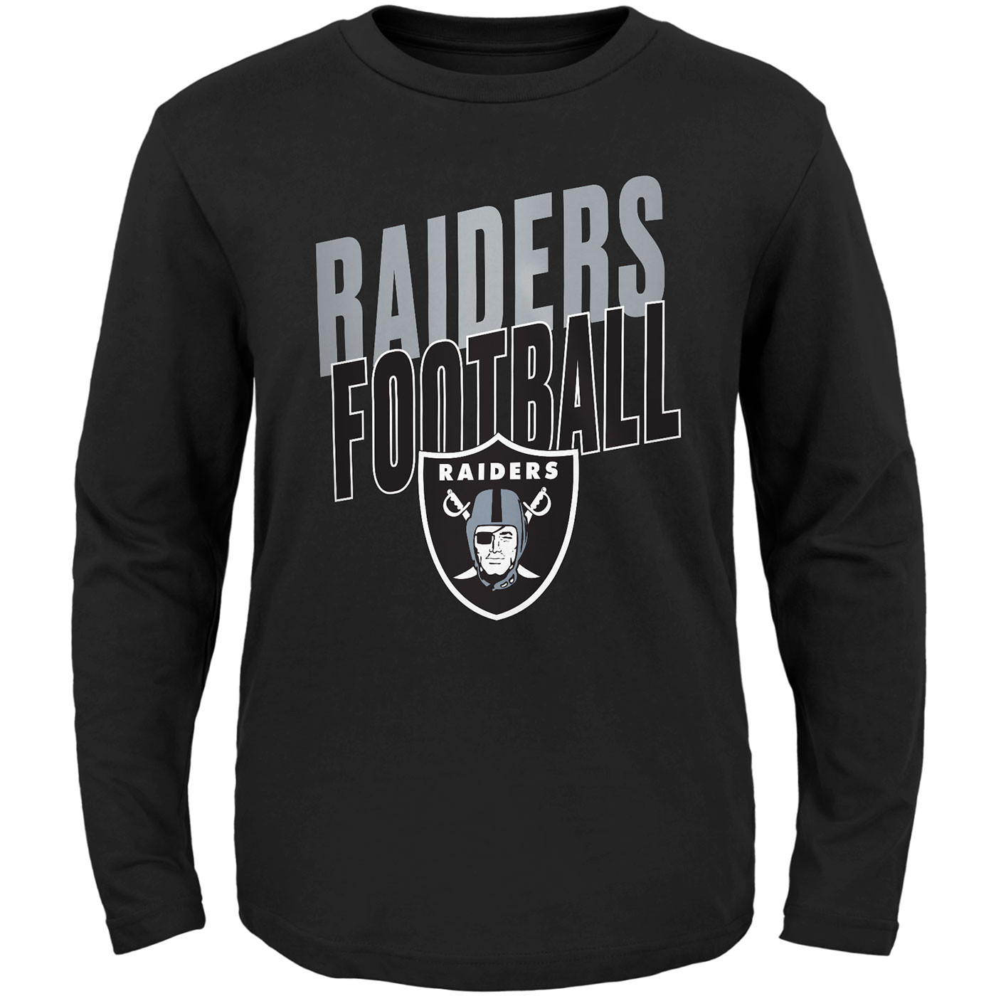 Get your young fan ready for kickoff! The Raiders Showtime Youth Long Sleeve Crew Neck Tee by Outerstuff features "Raiders Football" and large team shield logo print across the body.