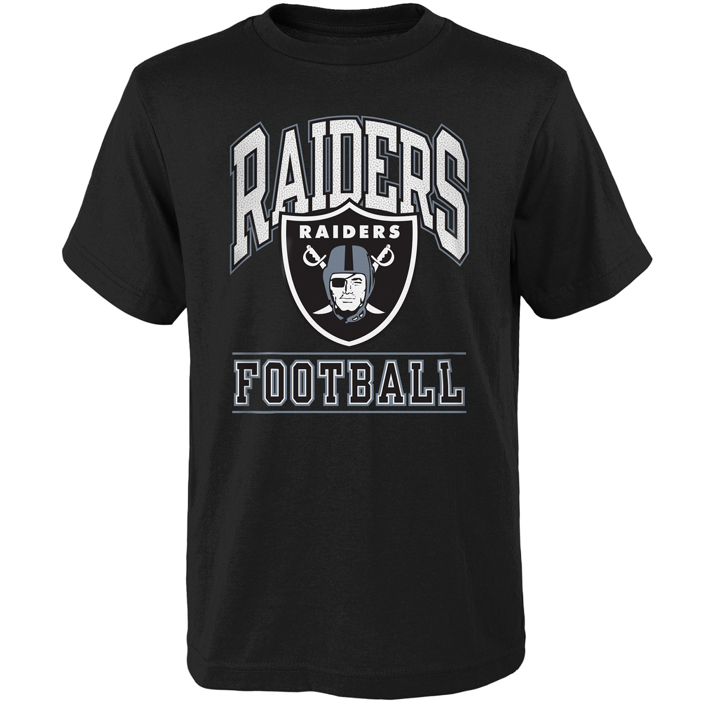 The Raiders Youth Big Blocker Tee by Outerstuff is designed with soft, stretchy fabrication and features bold "Raiders Football" and team shield logo print across the chest. 100% cotton.