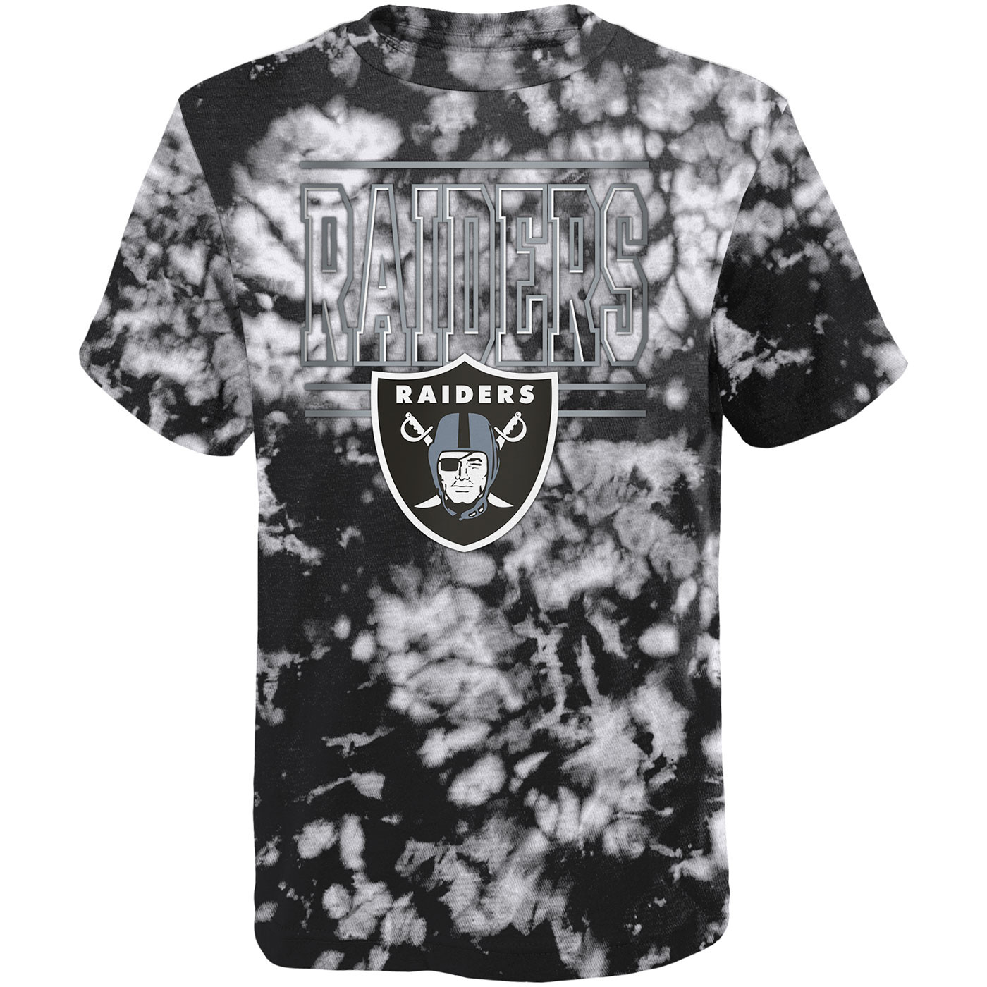 The Raiders Youth Winning Streak by Outerstuff tie-dyed design features the famed Raiders team shield logo and "Raiders" lettering printed across the chest. 100% cotton.
