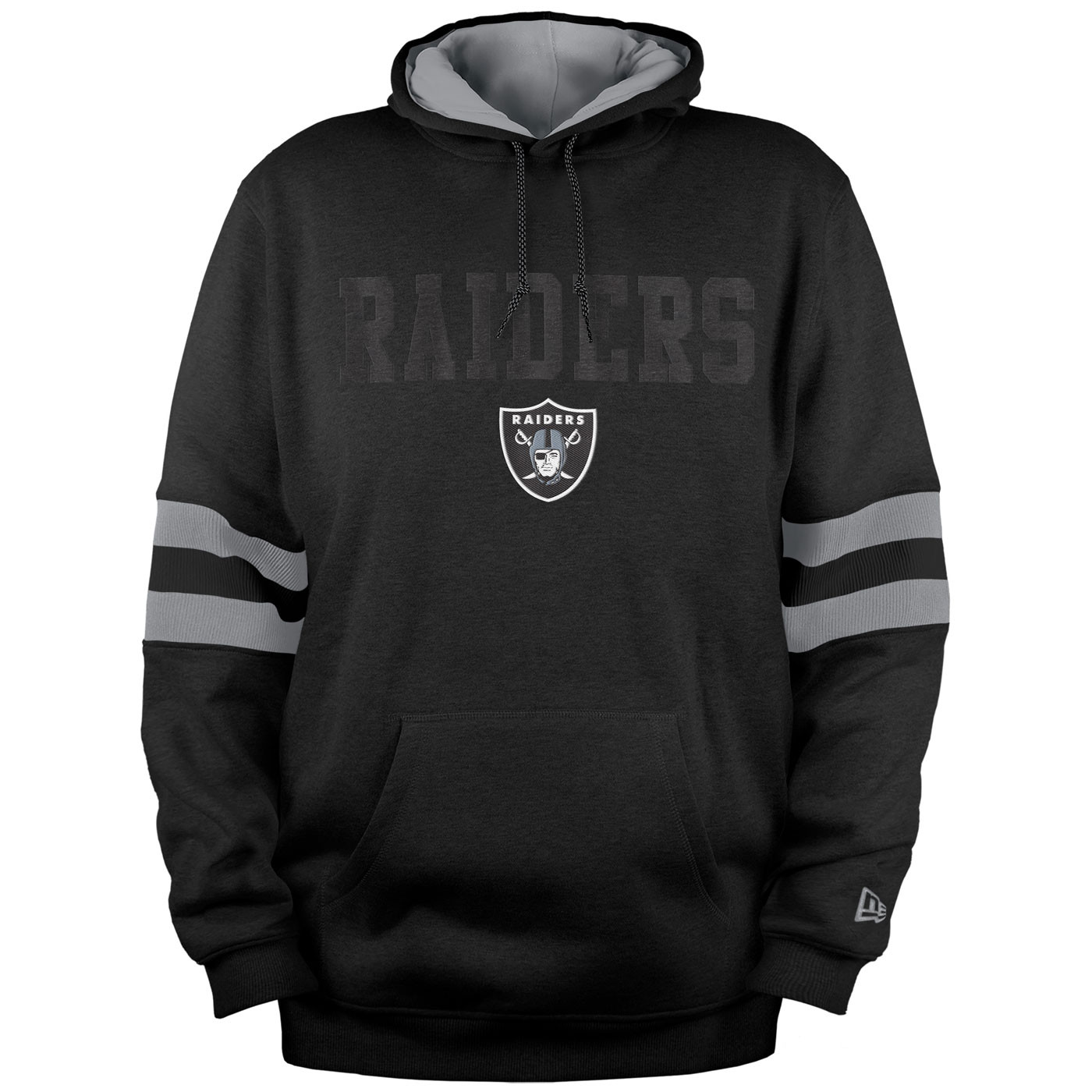 Celebrate Raider Nation in Comfort and Style. The New Era Pullover Hoodie With Sleeve Inserts boasts contrasting sleeve inserts and a tonal Raiders embroidery, paired with an embroidered team shield logo on the front, ensuring you stand out in the crowd. 80% cotton, 20% polyester.