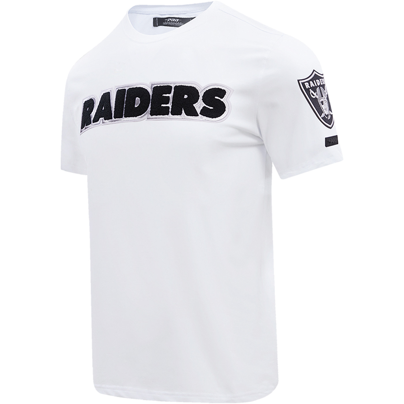 Gear up for game time in style with the Pro Standard Las Vegas Raiders Pro Team Tee, a must have for every dedicated fan. Featuring a striking team wordmark logo chenille applique on the front chest, this shirt features additional team shield and team helmet appliques on the left and right sleeves respectively. 94% cotton, 6% spandex.