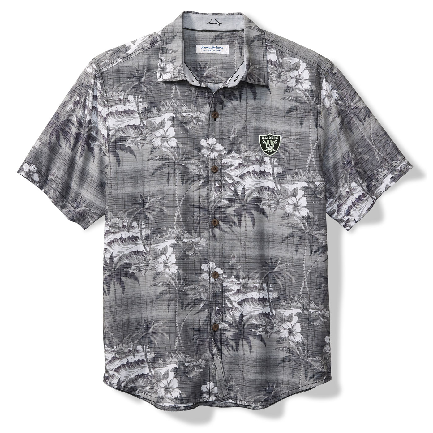 Celebrate Raider Nation pride with the Tommy Bahama Sport Coconut Point Isla Palmetta Button Up! This sophisticated shirt showcases an intricately embroidered team shield logo on the chest pocket, set against a striking all-over sublimated tropical print. Perfect for any fan looking to combine style and team spirit.