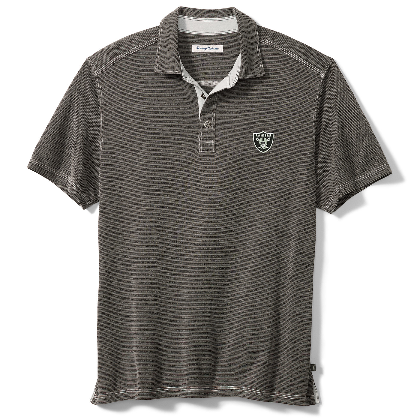 The Raiders Tommy Bahama Sport Paradiso Cove Polo is designed with textured, sustainable fabrication that makes the perfect lightweight top. This short sleeve polo has solid knit trim detailing at the inside placket and collar stand, plus accent top stitching and a team shield logo at upper left chest. Made from Tencel modal, recycled polyester.