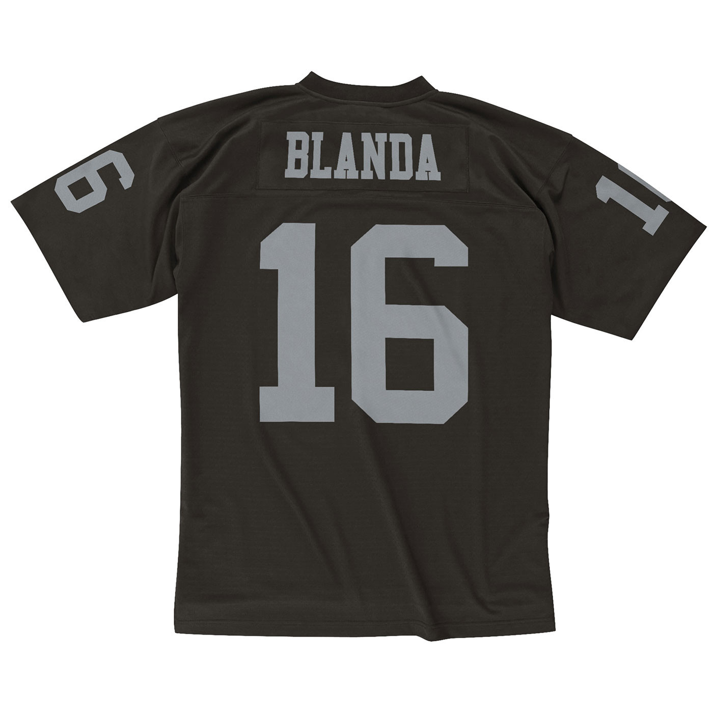 Celebrate a Raiders legend with the Mitchell & Ness George Blanda 1967 Legacy Jersey. This replica jersey is made of polyester mesh with a droptail hem, side slits, and a ribbed knit v-neckline. It is embellished with twill name and numbers at the chest, back, and sleeves. Embroidered felt name/year ID patch and Mitchell & Ness jock tag on lower left front. 100% polyester.
