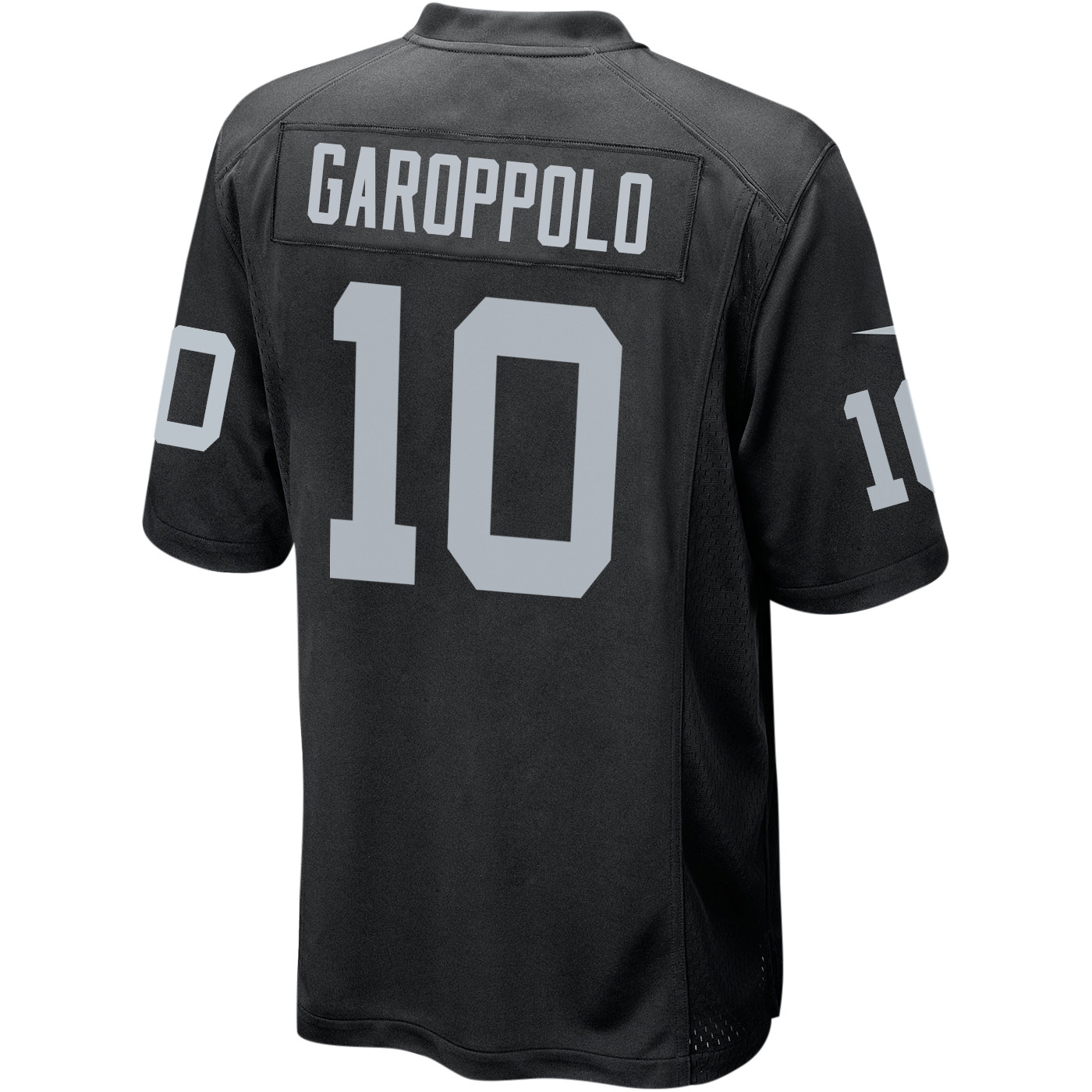 This Nike Jimmy Garoppolo Game Jersey is designed to a modern fit—removing excess fabric with adjusted armhole sizing as well as adjusted sleeve lengths. Each jersey has a bound, clean finished neckband and heat transfer back neck label for zero distraction. It is embellished with a silicone lightweight print player name and number on the front, back and sleeves. 100% polyester.