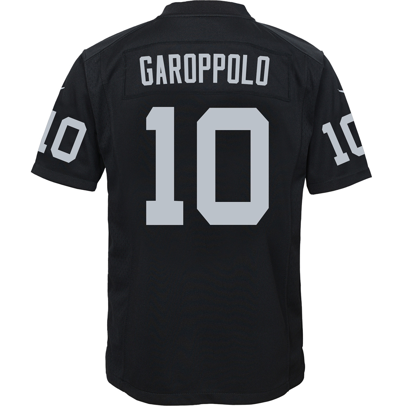 This Nike Jimmy Garoppolo Youth Game Jersey is designed to a modern fit—removing excess fabric with adjusted armhole sizing as well as adjusted sleeve lengths. Each jersey has a bound, clean finished neckband and heat transfer back neck label for zero distraction. It is embellished with a silicone lightweight print player name and number on the front, back and sleeves. 100% polyester.