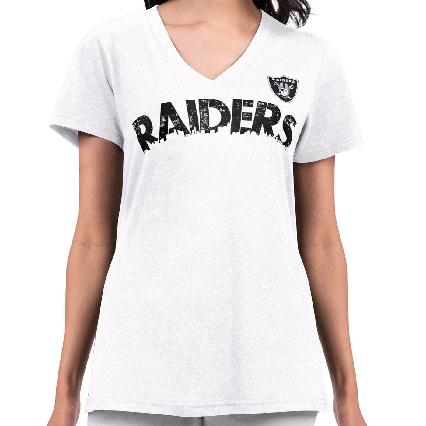 Show your pride for Raider Nation with the Key Move Tee by GIII. This V-neck tee features bold distressed "Raiders" print and team shield logo printed across the chest. 100% cotton.