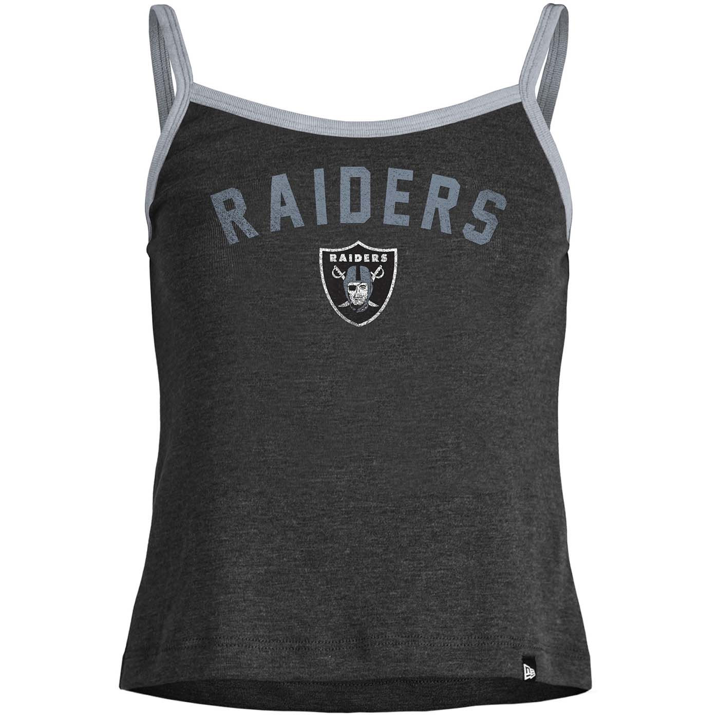 The Raiders New Era Women's Bi-Blend Camisole is designed with heathered fabrication, a scoop neck, and spaghetti straps for maximum comfort. This loose-fitting camisole features team name and shield logo print across the chest.