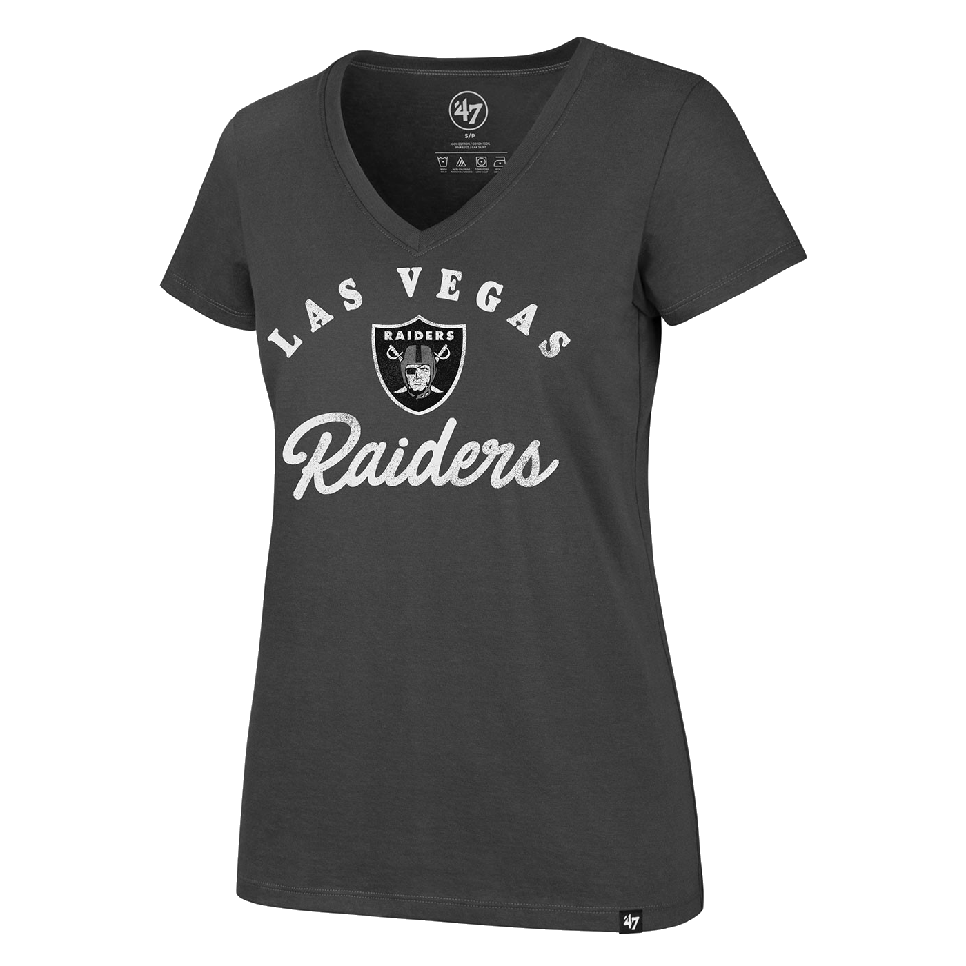 For the stylish fan who wants to rep their team! The Raiders '47 Las Vegas Spirit Script Rival Tee features a screen printed team name and Raiders' shield logo on the chest. 100% cotton.