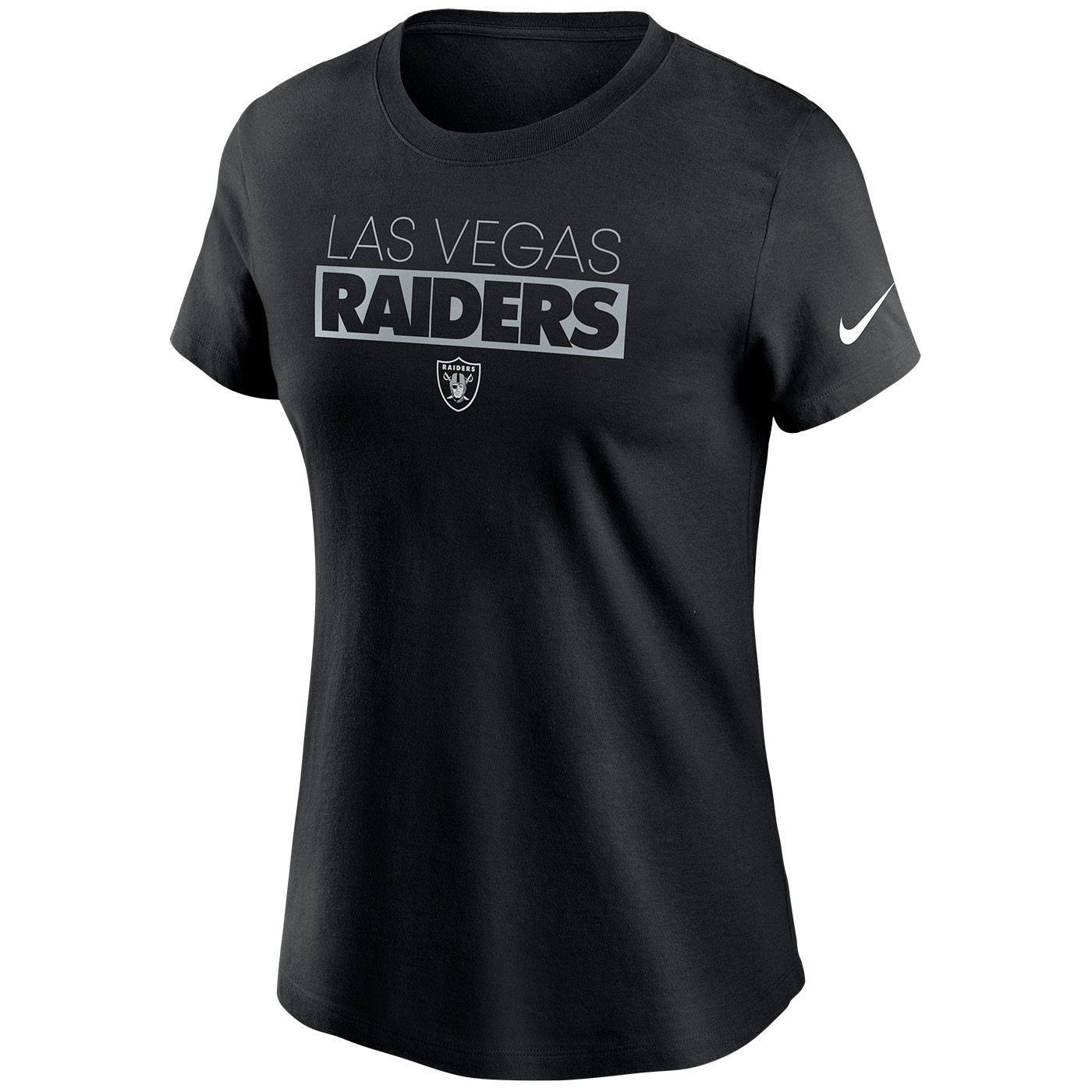 Declare your allegiance to the Raiders with the Nike Women's Wordmark Tee. This staple tee features a printed team wordmark and Raiders shield logo at center chest.